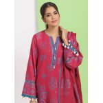Unstitched 3-Piece Red Cotton Karandi Embroidered Dress | Mahru Winter Collection