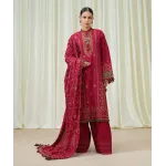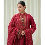 Experience warmth and elegance with Mahru’s Unstitched Red Cotton Karandi 3-Piece Suit — a perfect pick for the winter season. Crafted with intricate embroidery and luxurious detailing, this ensemble combines tradition with modern grace.